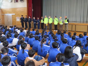 昨日は、全校で心をひとつにして歌う「歌声集会」が行われました。今回は特別ゲストとして、富山県西部の音楽部会の先生方、そして…美声戦隊歌声レンジャーが登場!