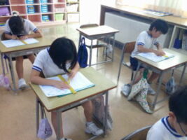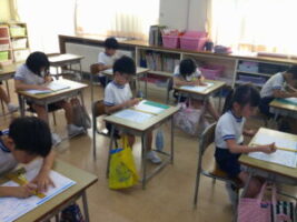 各ポイントではフラフープ通しやボール送り、しり文字などの楽しい課題が出されました。声をかけ合いながら力を合わせました。きっと友達のよいところを見つけ合ったことと思います。