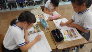 3年生は、社会科で「スーパーマーケットのひみつ」を学んでいます。普段何気なく利用しているスーパーには、たくさんの工夫や働く人々の努力があるのではないかと予想を立てています。子どもたちは「これからはお店を見る目が変わりそう!」と話しており、学習が生活とつながる実感をもつことができました。ぜひ、ご家庭での買い物の際にも、お子さんと一緒にスーパーの工夫を探してみてください。そして、保護者のみなさま、社会科インタビューにお答えいただきありがとうございました!