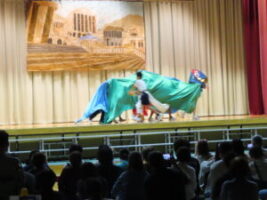 10月4日(土)、学習発表会を行いました。多くの保護者の皆様、地域の方々、来賓の皆様に来ていただき盛大に発表会を行うことができました。全校児童、この日のために練習や準備を積み重ねてきました。スローガンは「挑戦のつばさを広げよう!みんなの思いを一つに個性輝く学習発表会」です。どの学年の子供たちも、もてる力を精一杯発揮し、自分の役をやり遂げました。みんなの思いを一つに演技や合唱、合奏を届けられたと思います。学習発表会を終えて「挑戦のつばさを広げた」子供たちは、学んだことをさらなる挑戦に生かしていくものと思います。
