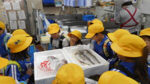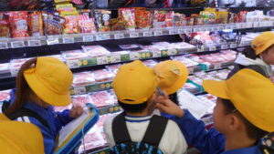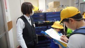10月14日(火)、3年生は社会科の学習で、地域のスーパーマーケットへ見学に行きました。お店の中では、商品の並べ方、お客さんが買いやすい工夫、働く人たちの仕事の様子等を実際に見て学びました。バックヤードでは、ふだんは入れない商品を仕分ける場所や冷蔵庫の中も見せていただき、子どもたちは興味津々!見学のあとには、たくさんの質問をして、メモをとる姿が見られました。今回の見学を通して、地域の人たちの仕事やくらしを支えているスーパーマーケットの役割を実感できました。