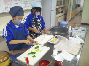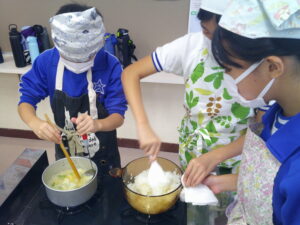 5年生は家庭科の授業で、調理実習に取り組みました。今回のテーマは「ごはんと味噌汁」です。