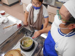 味噌汁づくりでは、煮干しから丁寧にだしをとり、だしの香りがふわっと広がる、風味豊かな味噌汁が完成しました。