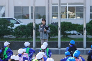 出発前の校長先生の話です。真剣に話を聞く中太っ子、リーダー、副リーダーだけでなく、班員みんなで遠足を成功させようとの気持ちを高めて出発しました。