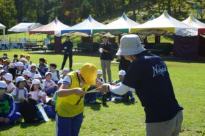 各ポイントではフラフープ通しやボール送り、しり文字などの楽しい課題が出されました。声をかけ合いながら力を合わせました。きっと友達のよいところを見つけ合ったことと思います。