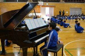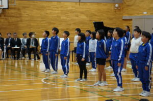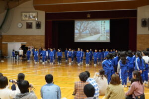 全校合唱で取り組んだ曲は、富山県の魅力が詰まった「ふるさとの空」です。子供たちは、富山の山や海、空を思い浮かべながら、心を込めて歌いました。体育館いっぱいに広がる歌声は、まるで富山の自然そのもののように澄んでいました。