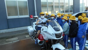 3年生は、11月7日(金)に終日校外学習へ行ってきました。まず始めに射水警察署を見学しました。警察官の方から、地域の安全を守るためにしているお仕事についてお話を聞きました。パトカーや白バイに乗せていただいたり、実際に警察官の装備を見たりして、子供たちはとても興味津々でした。「地域の安全を守るためにたくさんの工夫があることが分かった」「警察官の仕事は大変だけどかっこいいと思った」などの感想がたくさん聞かれました。今回の見学を通して、警察の仕事への理解を深めることができました。