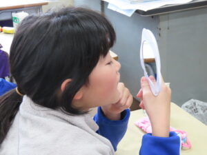 といったポイントに気付き、歯や歯肉を守るために丁寧な歯みがきをしようと意欲を高めていました。