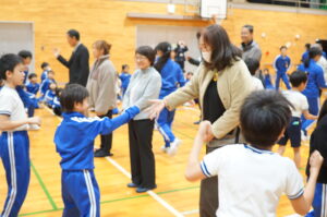 まずは、地域の方々とふれあいゲームをしました。地域の方々とじゃんけんゲームをして楽しいひと時を過ごしました。