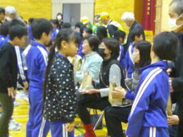 最後に、4年生が代表してプレゼント渡しをしました。一人一人が一言を伝え、プレゼントを手渡ししました。地域の方々に笑顔でプレゼントを受け取っていただきました。
