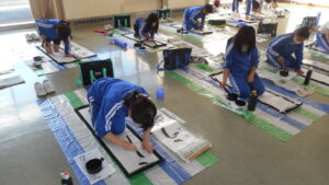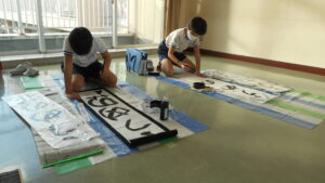 3年生は年始の書初大会に向けての練習を行いました。初めての本格的な書き初めということもあり、筆の持ち方や姿勢、墨の付け方など、基本から丁寧に確認しながら進めました。課題の文字をゆっくりと確かめながら、一画一画を大切に書いていく子供たち。書き終えた後は、自分の作品とお手本を見比べながら、「ここをもっとまっすぐにしたい」「力の入れ方を工夫したい」など、次への意欲が高まる姿も見られました。大会に向けて、よい練習の時間となりました。今後の仕上がりがとても楽しみです。