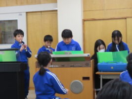 当日は、練習の成果を発揮し、どのグループも思いに合った演奏を披露しました。また、みんなで手拍子をしたり体を揺らしたりしながら演奏を聴くことができました。3学期も楽しく音楽をしていきましょう。