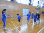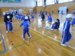 1年生さんからの依頼により、6年生が1年生のなわとびの回数を数える合同体育を行いました。技の練習中で、うまくできない1年生に「おしいよ!」「がんばれ!」「こうするといいよ。」と声を掛けながら数を数え、見守る6年生はさすが。面倒見のよさを発揮していました。一緒に技を練習したり、連続何回跳べるか記録したりしながら交流し、最後には大なわの練習も行いました。6年生の優しさが光る1時間となりました。