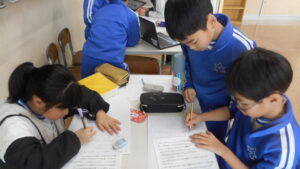 3年生は総合的な学習の時間に、身近な地域にある「薬勝寺池公園」のすてきを調べ、伝える学習に取り組んでいます。公園での見学や調べ学習から感じた魅力を広めようとスライドや動画、紙芝居、カードゲーム等でグループごとに伝えようと考えています。友達と協力しながら、「どうしたら相手に伝わるか」を考える姿がたくさん見られます。