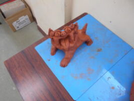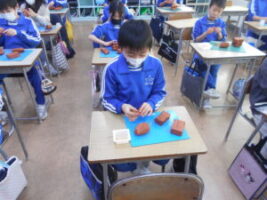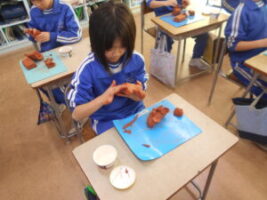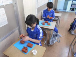 図画工作の時間に、シーサーづくりに取り組みました。
