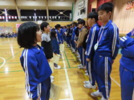 1年生は『メダル渡し』を担当しました。メダルには6年生のにこにこの笑顔が描かれていました。メダルをかけてもらった6年生の「ありがとう」という嬉しそうな言葉があちこちで聞こえました。