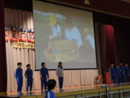4年生は『思い出クイズ』でした。6年生が1年生から5年生だったときの思い出を3択クイズにしていました。クイズに答えるたびに6年生の笑顔があふれていました。