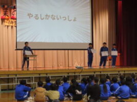 5年生は『思い出劇』でした。6年生の1年間の出来事を楽しく寸劇で表現しました。学年目標である「限界突破」をした行事や出来事で大活躍した様子を劇で演じました。一致団結、パワフルな6年生の力を発揮した姿をみんなで思い出しました。
