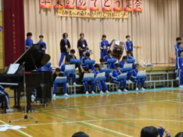 集会が終わろうとしたとき、6年生の「ちょっと待った!」コールがありました。6年生の心のこもった合奏があり、在校生は聴き入っていました。