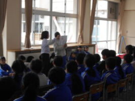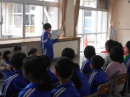 3年生のお兄さんお姉さんたちから、総合の学習の発表に招待していただきました。3年生の総合の学習では、地域の薬勝寺池について調べたそうです。動画や紙芝居、ミニゲームを使い、2年生に分かりやすく楽しく発表する3年生の姿に応えるように、2年生も発表を真剣に聞き笑顔で教室に戻っていきました。次の学年の新しい教科に期待を膨らませています。3年生のみなさんありがとうございました。