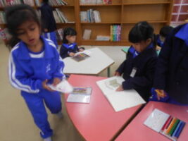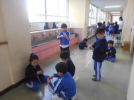 今日から昼休みと5時間目が始まりました。同時に、4月中実施予定の、朝休み後のなかよしタイム(遊びの時間)を行いました。ボールを使った体づくり運動をした後、色塗りや読書、けん玉、こま等、それぞれが自分のしたいことを選んで活動を進めます。「先生見て!」と、自分ができる技を嬉しそうに見せてくれました。また、「こうやったらいいんだよ」と、友達に教えてあげる姿も見られました。