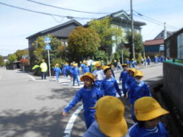 2年生は、交通安全教室で学校周辺の通学路を実際に歩きながら、安全な歩き方や道路の渡り方を学びました。横断歩道では、止まって左右をよく確認し、手を挙げて渡ることを練習しました。また、歩道では広がらず一列で歩くことや、周りの車や自転車に気を付けることも確認しました。子供たちは真剣に話を聞き、友達と声をかけ合いながら安全に歩くことができました。これからも毎日の登下校で、学んだことを生かして安全に行動してほしいと思います。