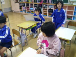 5年生は学校近くの「杉の子保育園」と「第3あおい幼稚園」を訪問し、年長児との交流活動を行いました。