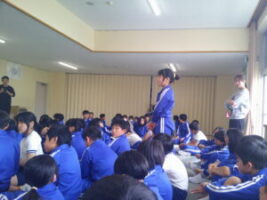 4時間目にはクラスのみんなの前で自己紹介です。緊張しながらも大きな声で自己紹介をすることができました。