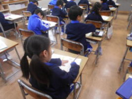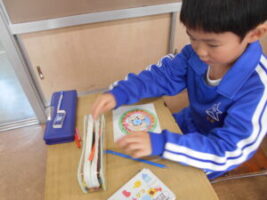 もうすぐ卒業を迎える6年生に向けて、3年生がメッセージカードを入れる封筒づくりに取り組みました。「ありがとう」「がんばってね」「中学校でも応援しているよ」など、一人一人が心をこめて、思いを伝えるための封筒を丁寧に仕上げました。イラストを描き、受け取る卒業生が笑顔になることを想像しながら、楽しく、そして真剣につくる姿が見られました。完成した封筒は、メッセージカードとともに、卒業おめでとう集会で6年生へ届けます。在校生の感謝と応援の気持ちが、しっかりと伝わることを願っています。